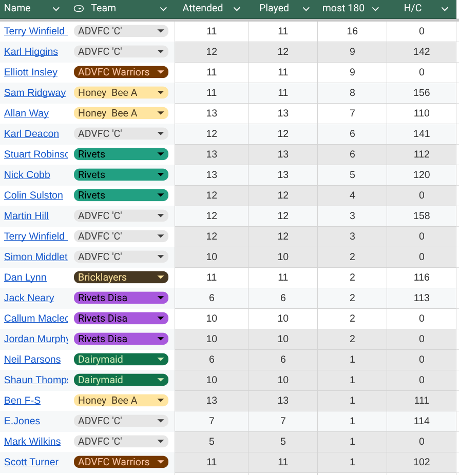 To check out all the stats please goto https://aylesburyvaledartsleague.co.uk/